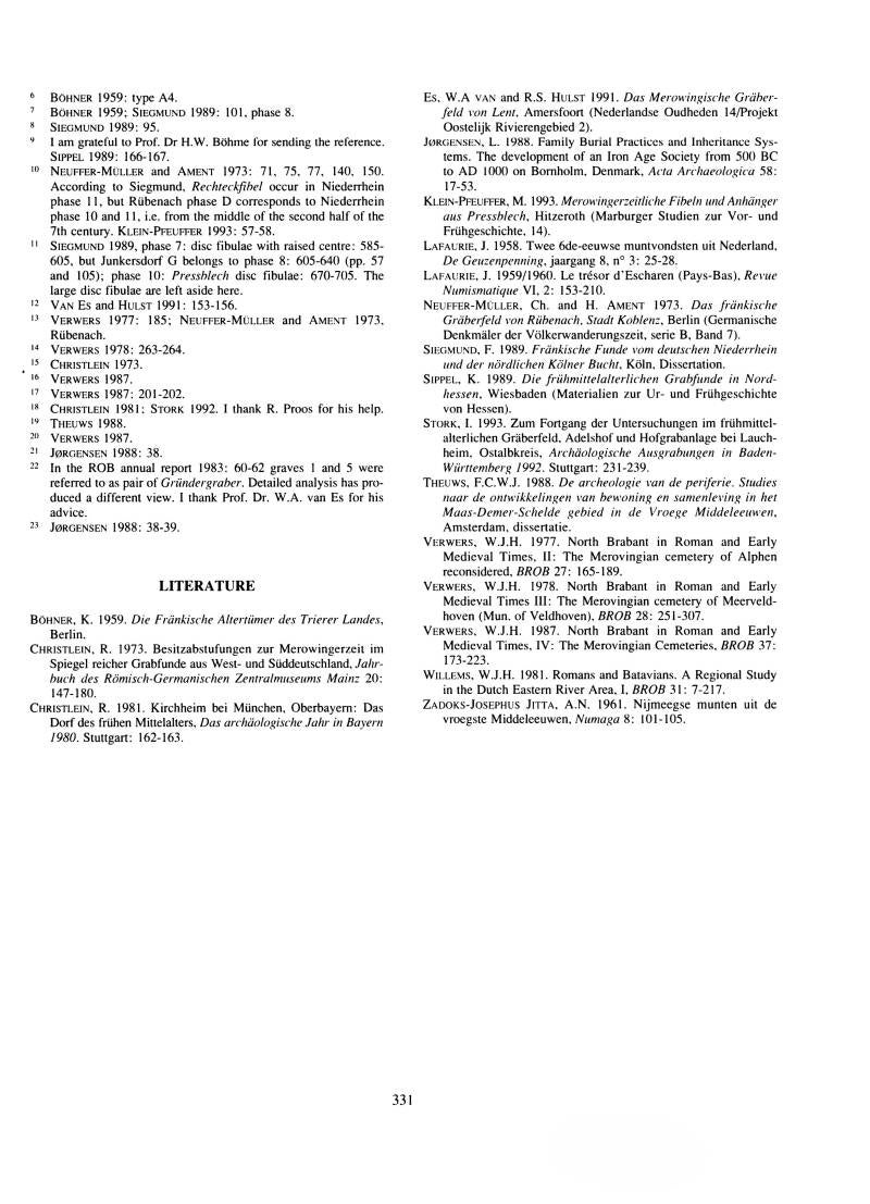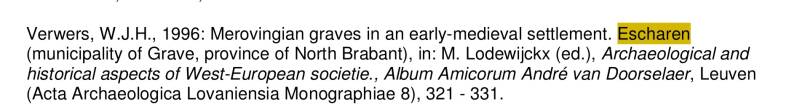Hieronder het Engelstalig wetenschappelijk artikel dat Dhr. Verwers van het ROB in 1996 geschreven heeft over de gevonden Merovingische grafvelden hier in Escharen. In opdracht van de Universiteit van Leuven.