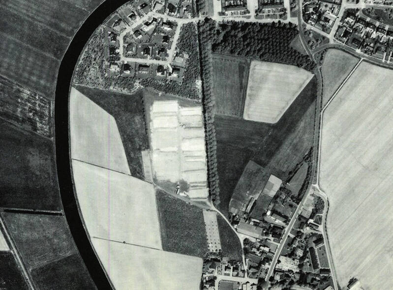 Luchtopname van het afgravingsgebied, begin jaren tachtig.