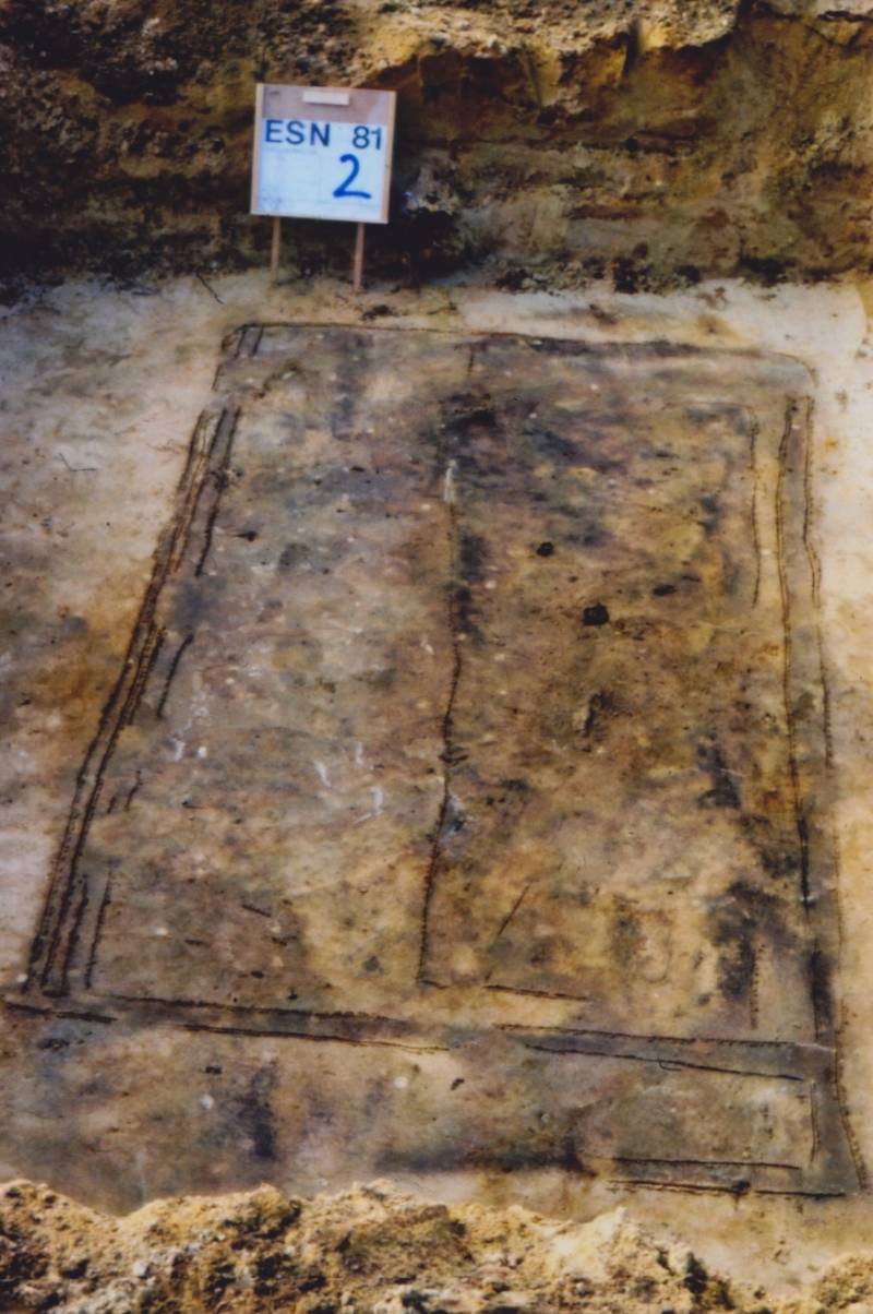 Vanwege de zanderige bodem(kalkvrij) werd van skeletresten nauwelijks iets teruggevonden.
