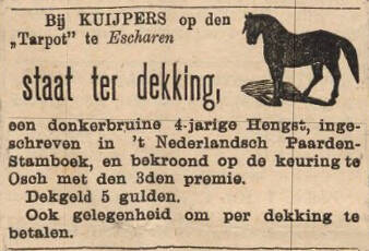 Piet Kuijpers en Hanneke Reijs hebben altijd een gemengd bedrijf gehad. Met de hoofdzaak, vanuit de Cuppens traditie, akkerbouw in dienst van de veeteelt. Varkens hadden ze voor eigen consumptie en voor beperkte verkoop. Uit onderstaande advertenties uit de Graafsche Courant blijkt dat men ook over een goede dekhengst beschikte.