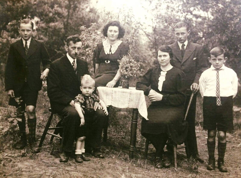 1937: Driek Driessen, Martien van Boxtel, zoontje Henk van Boxtel, Tonia van Boxtel-Driessen en nichtje Marietje Jacobs.
