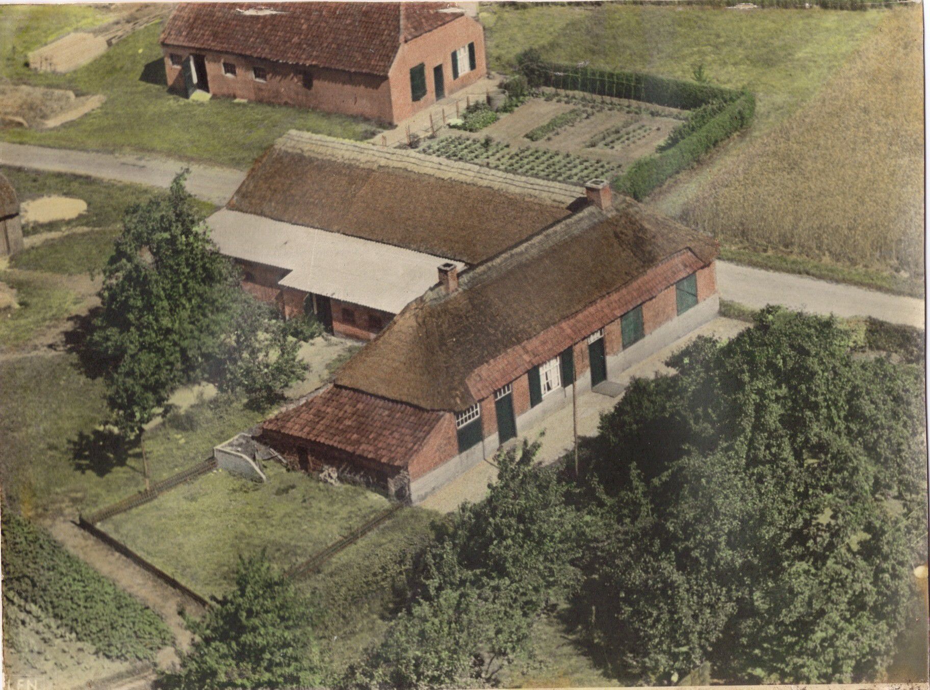 Luchtfoto van de boerderij rond het jaar 1950. De boerderij is rond het jaar 1959 grondig verbouwd.
