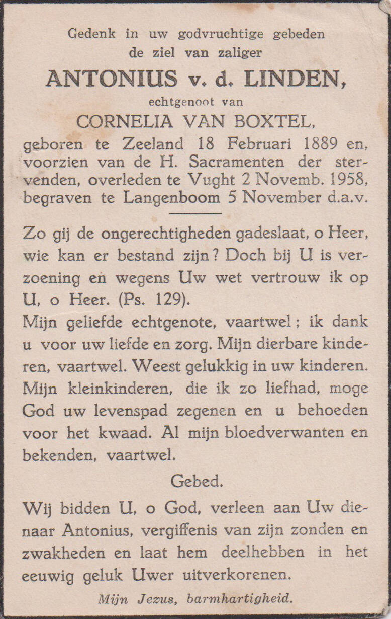 In november 1919 komt Antoon vanuit Mill met vrouw en kind (Henricus) naar de Lage Hei. Antoon is getrouwd met de in Escharen geboren Cornelia van Boxtel (1892).