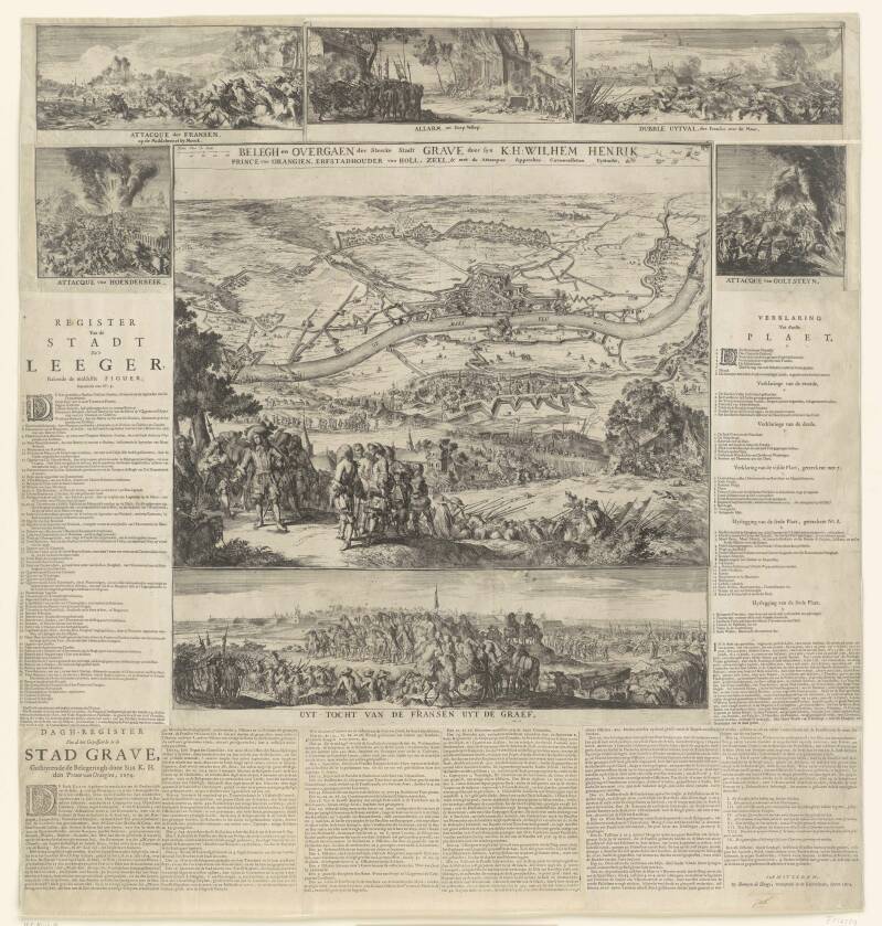 Kaart van het beleg en verovering van Grave door Willem lll in 1674.