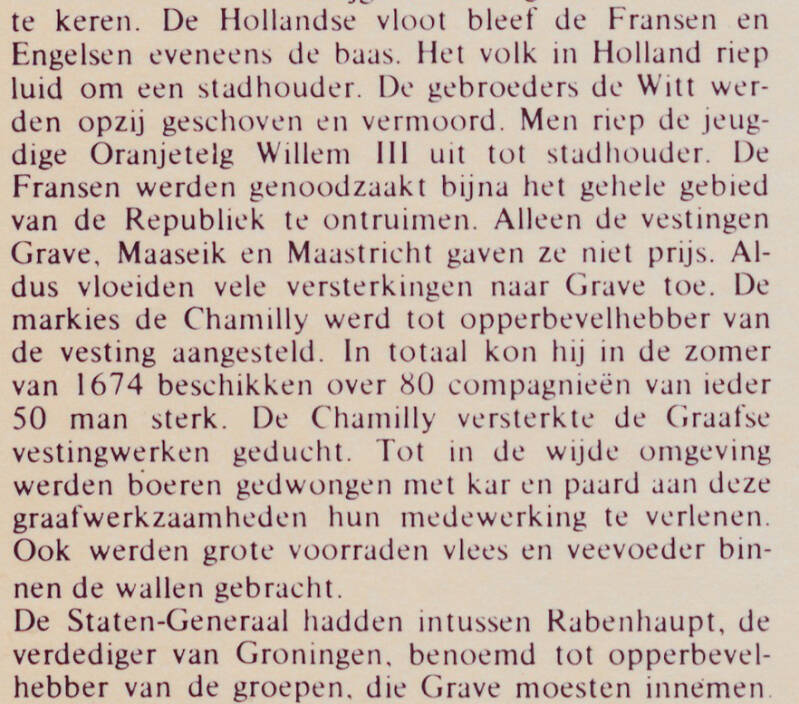 Hieronder leest u enkele fragmenten uit de tekst 'De belegering van de vesting Grave van 1674' van Drs. H. Douma.
