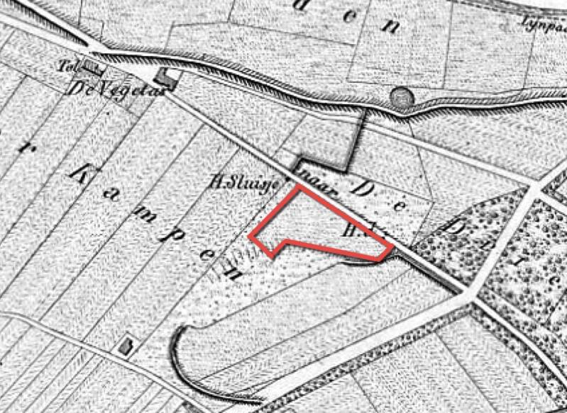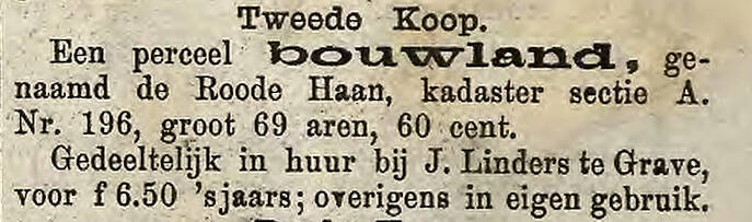 In het Estersveld, dus tussen Vesting Grave en Escharen in, ligt een gebied dat van oudsher ‘De Roode Haan’ genoemd werd. Het betrof enkele percelen weiland en bouwland. Volgens oude aktes hebben hier ooit twee boerderijen gestaan.