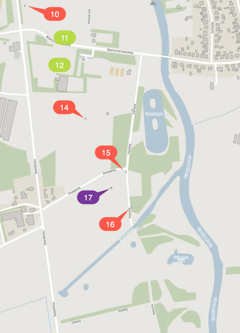 In het huidige landschap zien we in de bouwstijl van oude boerderijen, de angst voor overstroming terug. Ter bescherming tegen het jaarlijks opkomende water van de Beersche Maas, werden deze boerderijen op een verhoging gebouwd. Hieronder enkele voorbeelden daarvan.