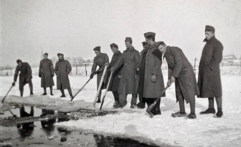 De winter van 1939-1940 bracht zeer strenge vorst en veel sneeuw. Het was dus zaak om de Raam ijs-vrij te houden anders zou de inundatie geen nut hebben. Dit ijsvrij houden van de Raam was een dagtaak voor veel militairen. Veel oudere Escharenaren vertelden ons over de schaatspret van de schooljeugd destijds op de ondergelopen en bevroren weilanden langs de Raam.