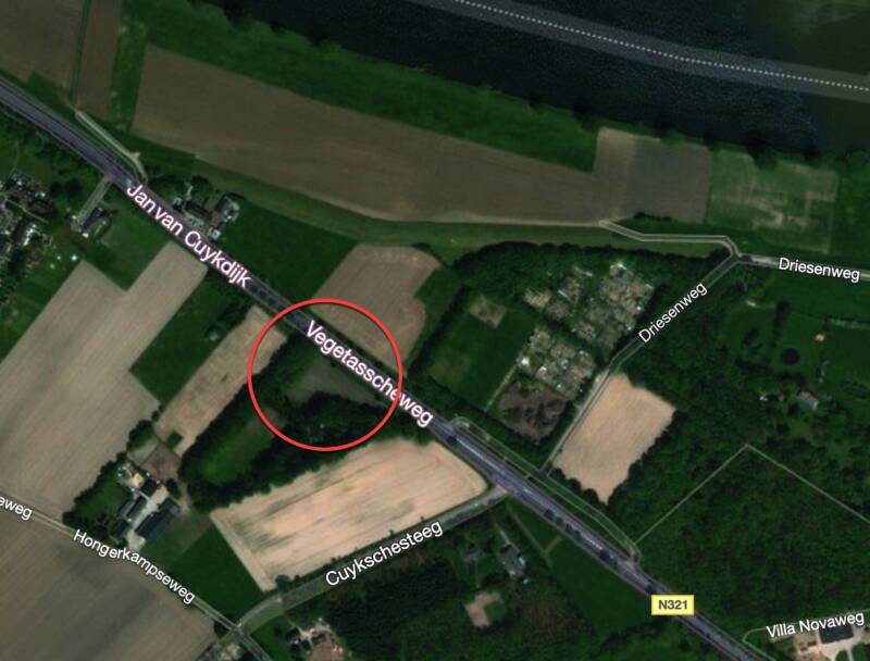 Rechts in het midden op de foto zien we nog een restant van de oude Beerse Maasdijk. Deze dijk was een onderdeel van de Polder van Gassel en Escharen.