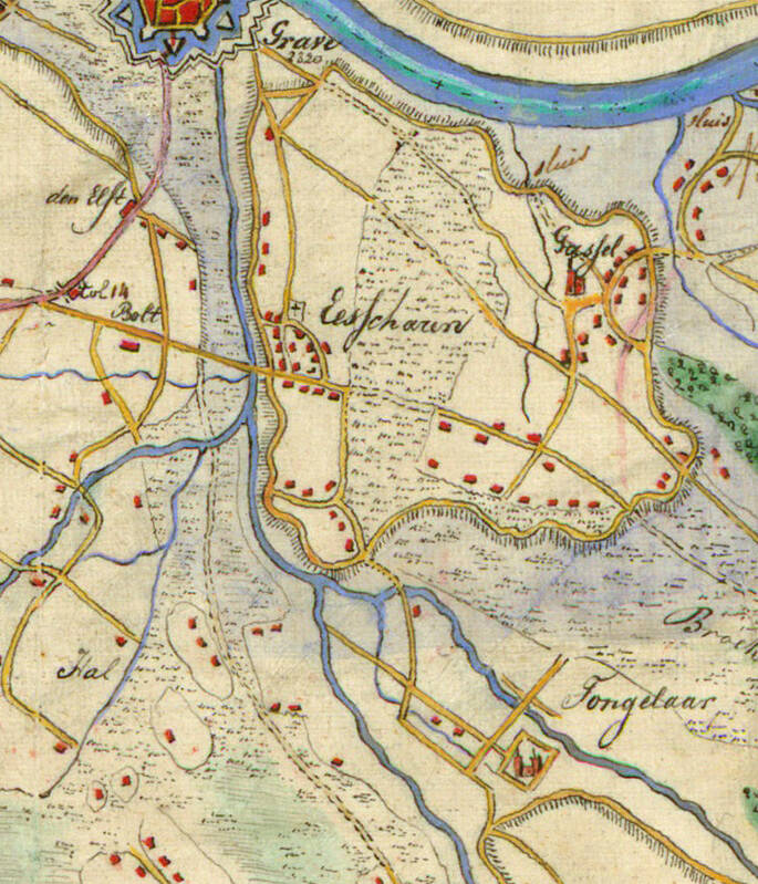 Uitsnede landkaart van 1746: Polder van Gassel en Escharen