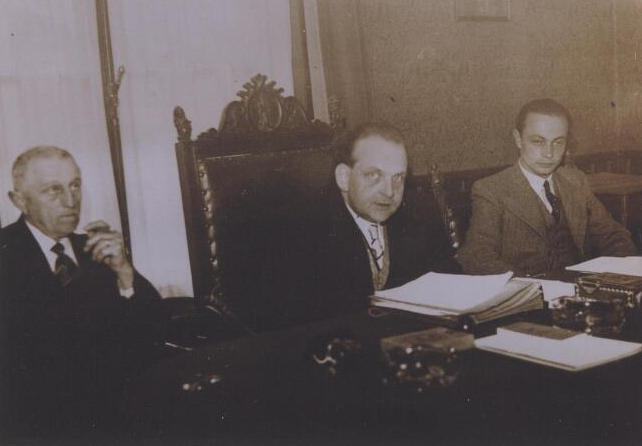 1941: Burgemeester Muyser met secretaris, wethouders en Raadsleden.