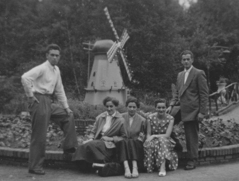 Jo van Iersel, Nellie vd Hoogen, Stiena van Iersel en Marietje en Wim van den Hoogen, tijdens een uitstapje naar de Keukenhof.