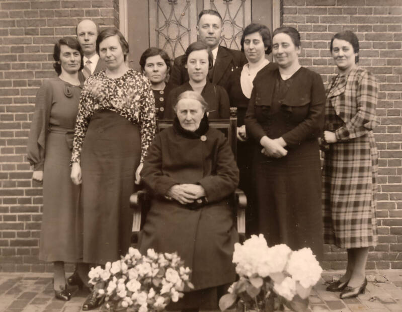 Een aantal leden van de familie van Iersel op de foto. Veelal zussen, de moeder, de vrouw, 2 zwagers en een nichtje van Antoon van Iersel, Toon de mulder. Wellicht was hij zelf de fotograaf. Gemaakt ter gelegenheid van een verjaardag van zijn moeder?