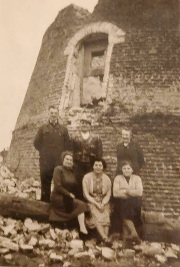 Foto links: boven; NN, Antoon van Iersel, Mevr. Giezen uit Mill. onder: Christien van Riet-van Iersel (zus van Antoon), Christien van Iersel (dochter van Antoon en Cato) en Cato van Iersel-Cuppen (vrouw van Antoon)