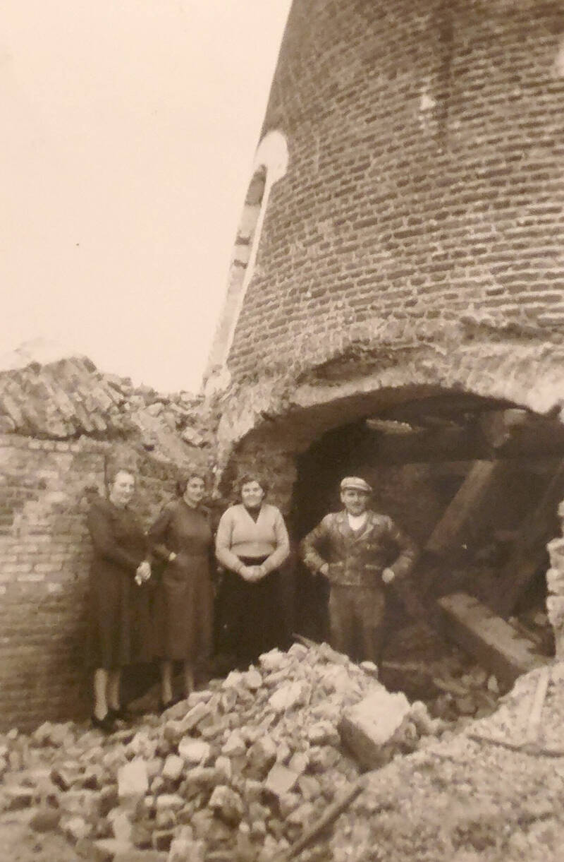Okt. 1945, Draaiende molen, deze foto is genomen vanuit de molenaarswoning.