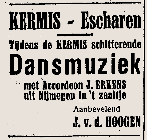 Een andere vorm van inkomen was het afhuren van het fanfarezaaltje, ’t Zaaltje, aan de St Machutusweg. Als er een dorpsfeest was, zoals bijvoorbeeld Kermis, dan verkocht Jan de drank. Een soort van catering dus. De hele familie werd dan ingezet om te helpen met opbouwen en bedienen. Er werd een muziekgroep ingehuurd en de ruimte werd met dansvloer en meubilair ingericht. Stukken dansvloer, enkele stoelen en wat borrelglaasjes zijn nog in familie.