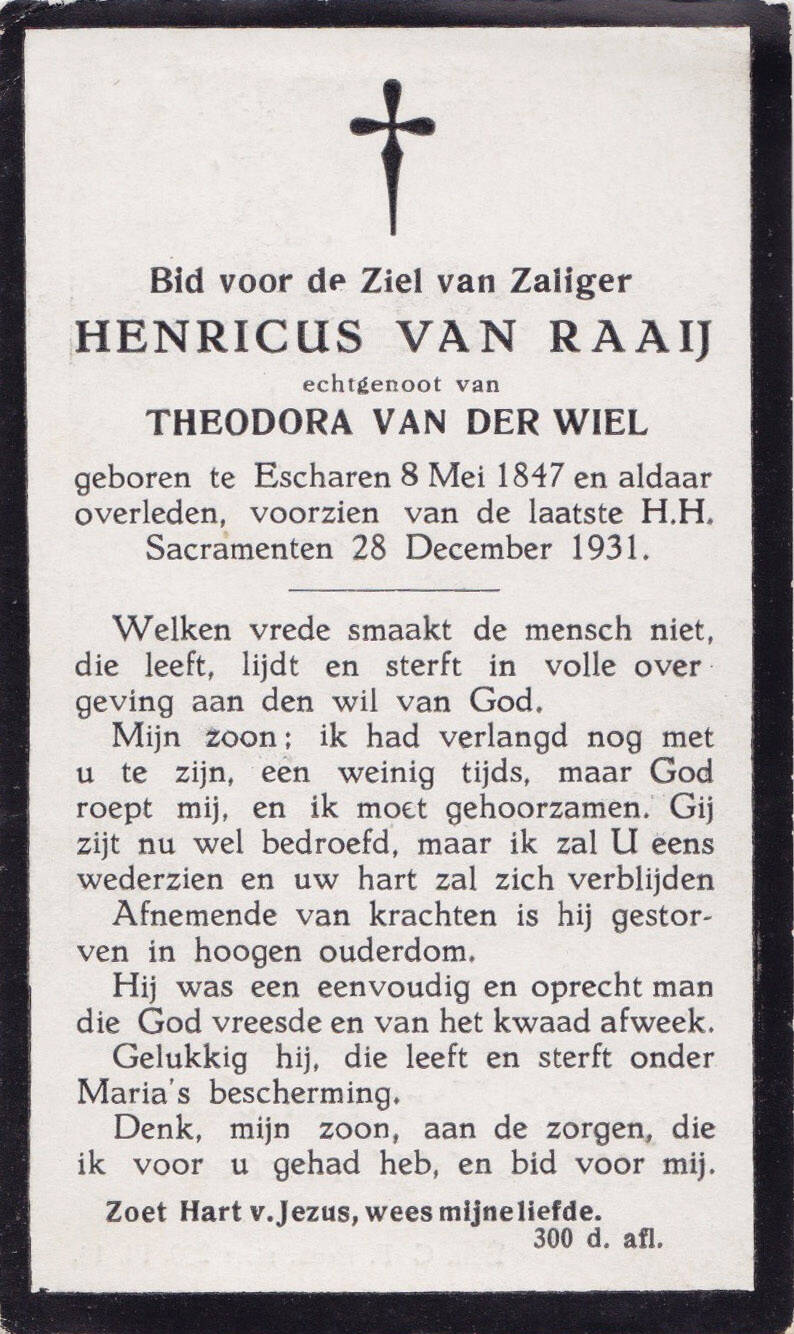 In 1850 woonde daar Hermanus Poos. Vervolgens werd de boerderij bewoond door Hendricus van Raay, Lambertus van Raaij en daarna de weduwe van Lambertus.