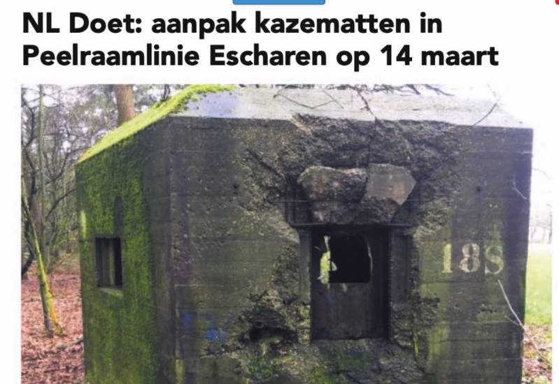 Esters Heem heeft met succes een aanvraag ingediend bij het Oranjefonds, dat vrijwilligers-projecten in het kader van NL Doet stimuleert met een kleine financiële prikkel. Een 14-tal kazematten op Escharens grondgebied hebben de tand des tijds maar net doorstaan. EstersHeem gaat zich inzetten om deze vervallen kazematten op te knappen. Wij nodigen iedereen uit die zaterdag 14 maart mee wil werken om zich te melden. Zie publicatie in ArenaLokaal.