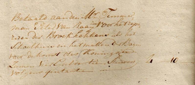 In het archief van het Dorpsbestuur van Escharen uit 1809 vonden we een aantekening. Het betreft een rekening van Meester timmerman Peter van Raay. Naast reparaties aan het Broekhekkens en het Schoolhuis staat er ‘.. het maken der Bogen voor de komst des Konings.'.