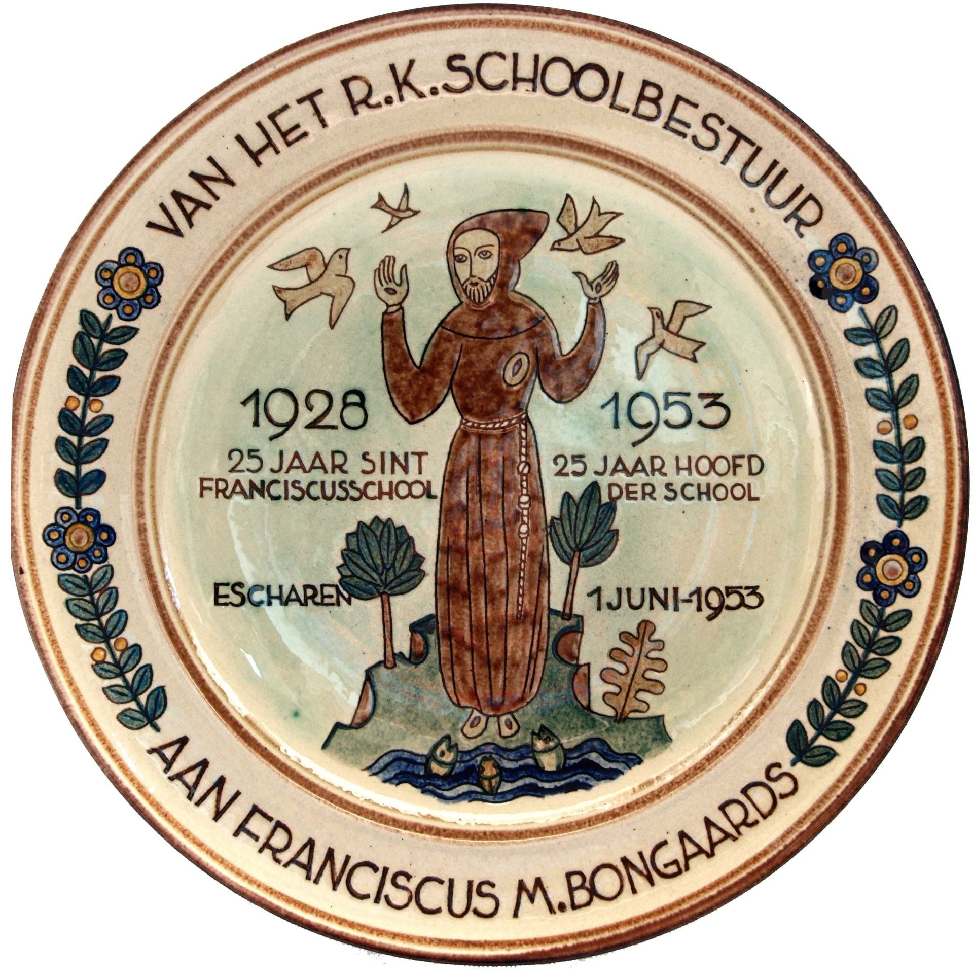 Een van de eerste activiteiten waar Meester Bongaards zich als hoofd der school in 1928 voor inzette was voor de omschakeling van de toenmalige Openbare Lagere School naar een Rooms Katolieke Bijzondere school. Voortaan werd er dus ook in Escharen Katholiek onderwijs gegeven.