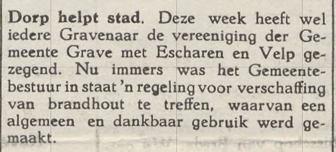 Op 5 december 1944 organiseerde de geallieerde soldaten voor de kinderen in Grave, Escharen en Velp op de kazerne een Sinterklaasfeest. 'De uitnodiging op zichzelf was al een verrassing, maar het feest zelf overtrof iedere verwachting. De sensatie voor de kinderen begon al, toen de vijf peletons-vrachtwagens kwamen voorgereden en juichend lieten de kinderen zich door de sterke soldaten erin tillen.' Hierboven staat een dankbericht aan de soldaten in de Graafsche Courant weergegeven.