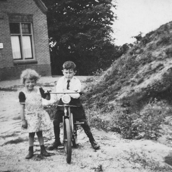 Aan beide zijden van de Hoogeweg waren stellingen gegraven. Op deze foto de kinderen Jan van den Hoogen: Wim, Arnold en Gerrit, naast hun ouderlijk huis aan de Hoogeweg 23.