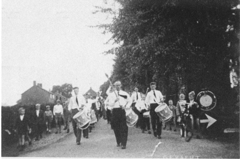 Fanfare Jongelingslust met in hun midden, Beschermvrouwe Bertha Peeters- Bens