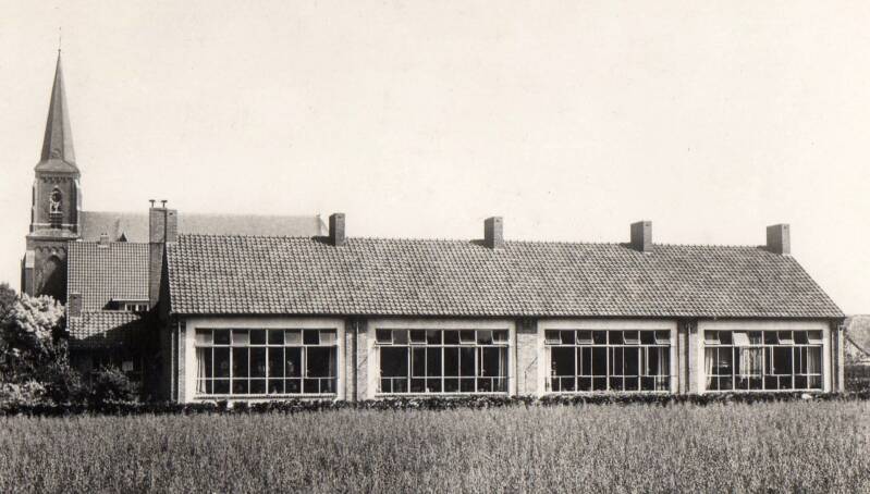 Ik ging 1 april 1950 lopend op houten klompen naar de lagere school. Daar waar nu 't Dorpshuus is stond toen de Lambertusschool nog. Ik heb niet lang in dat gebouw gezeten want nog in datzelfde jaar werd de nieuwe St. Franciscusschool geopend, de voorganger van De Ester.